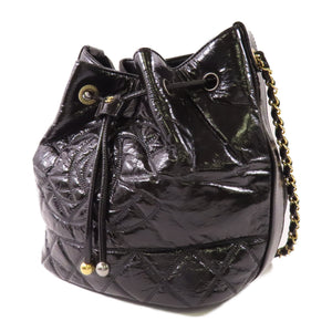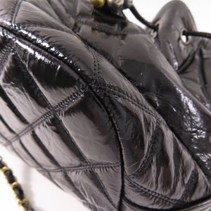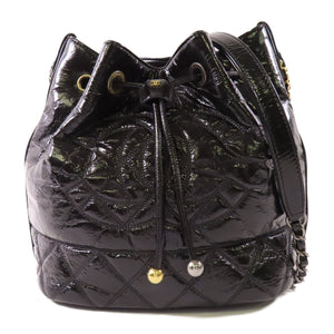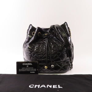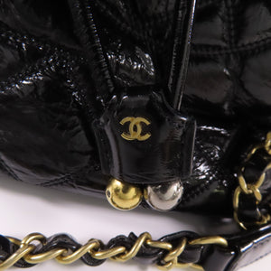 CHANEL CC GHW Drawstring Chain Shoulder Bag AS1877 Patent Leather Black
