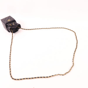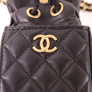 CHANEL CC GHW Mini Bucket Box Chain Shoulder Bag Lambskin Leather Black