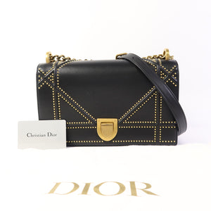 Christian Dior CD GHW Diorama Shoulder Bag Calfskin Leather Black