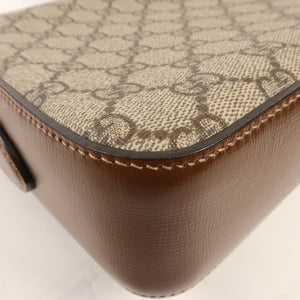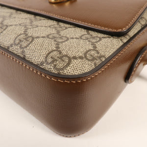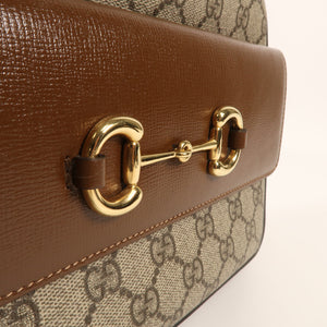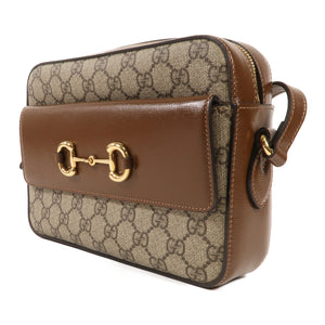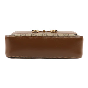 GUCCI GG GHW Horsebit 1955 Shoulder Bag 645454 PVC Coated Canvas Brown