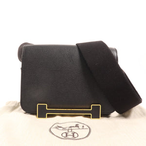 HERMES GHW Geta Shoulder Gag Chevre Leather Noir