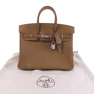 HERMES PHW Birkin 25 Handbag Swift Leather 3G Alezan Brown