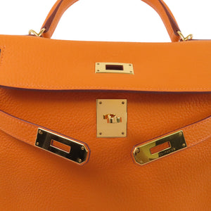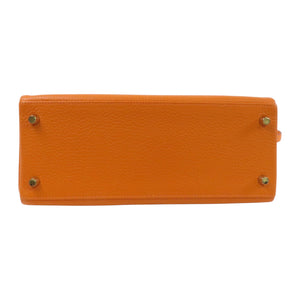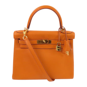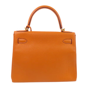 HERMES GHW Kelly 28 Handbag Shoulder Bag Clemence Leather 93 Orange