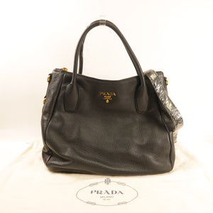 PRADA GHW 2 Way Shoulder Bag Handbag Calfskin Leather Black