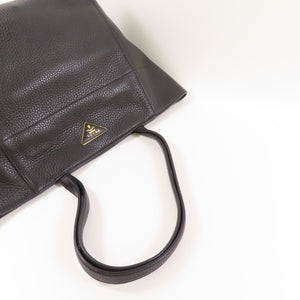 PRADA GHW Shoulder Bag Calfskin Leather Black