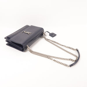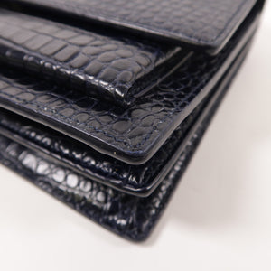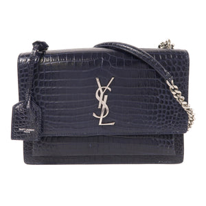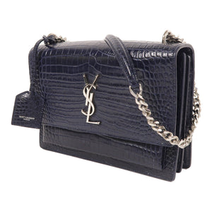 SAINT LAURENT YSL SHW Sunset Medium Chain Shoulder Bag Calfskin Leather Navy