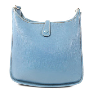 HERMES PHW Evelyne PM Shoulder Bag Taurillon Clemence Leather Bleu Jean