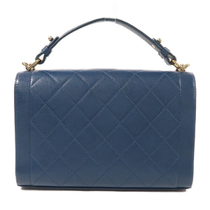 CHANEL CC GHW 2 Way Shoulder Bag Calfskin Leather Blue