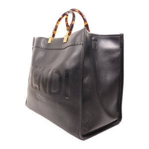 FENDI GHW Sunshine Large Handbag Calfskin Leather Black