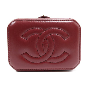 CHANEL CC GHW Mini Vanity Case Shoulder Bag AP3459 Lambskin Leather Red