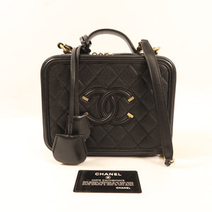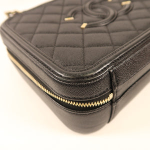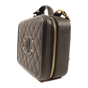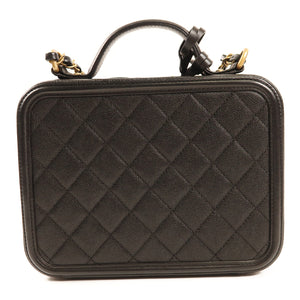 CHANEL CC GHW Vanity Case Chain 2 Way Bag Calfskin Leather Black