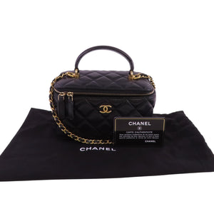 CHANEL CC GHW Vanity Case Hand Chain Shoulder Bag Lambskin Leather