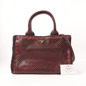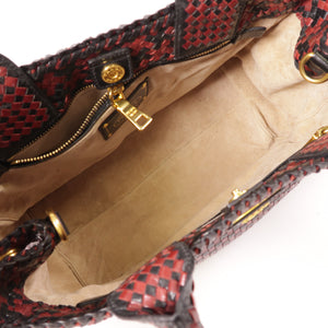 PRADA GHW 2 Way Bag B2114M Calfskin Leather Black/Red