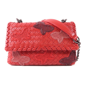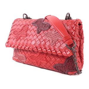 BOTTEGA VENETA BV Chain Shoulder Bag Lambskin Leather Red