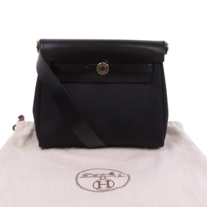 HERMES PHW Mini Herbag Shoulder Bag Crossbody Canvas 89 Noir Black
