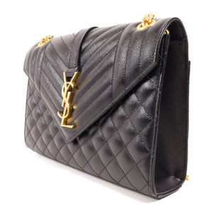 SAINT LAURENT YSL GHW Envelope Medium Shoulder Bag 600185 BOW91 1000 Calfskin