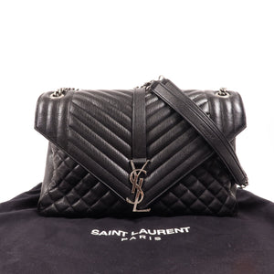 SAINT LAURENT YSL SHW Envelope Large Shoulder Bag 440115 Calfskin Leather Black