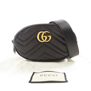 GUCCI GG GHW GG Marmont Waist Bag 476434 Calfskin Leather Black