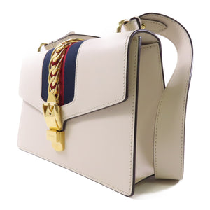 GUCCI GG GHW Sylvia Shoulder Bag Calfskin Leather White