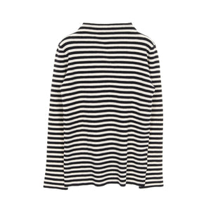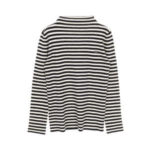 Knit Turtleneck Stripes Wool Ivory Black