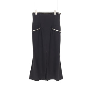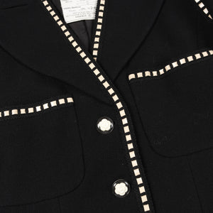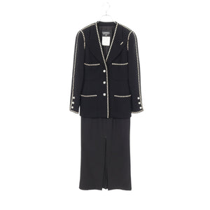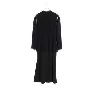 Camellia Button No-collar jacket Set up Skirt suit Wool Silk Black