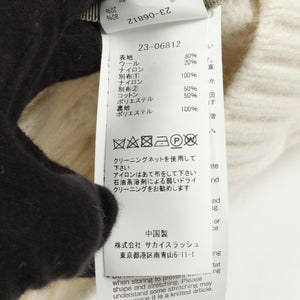Nylon Twill Mix Knit Pullover Cable Knit Crew neck Short sleeve Wool Nylon Ivory Khaki green Color-block