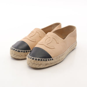 Coco mark Flat shoes Leather Beige Black Espadrilles