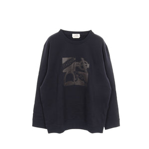 Metallerie au Carre Sweatshirt Crew neck Cotton Navy Dark brown Fleece lining