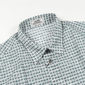 H pattern Serie button Shirt Long sleeve Cotton White Green