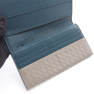 Intrecciato Bi-fold Long Wallet Leather Gray beige