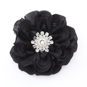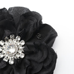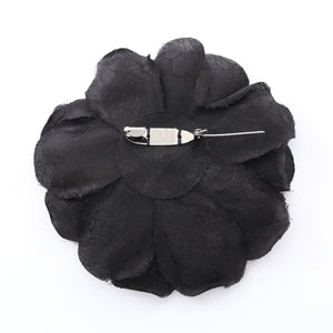 Camellia Brooch Silk Black Clear 25A