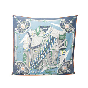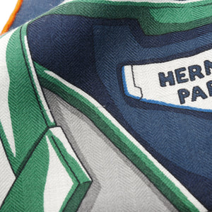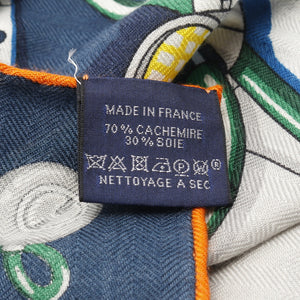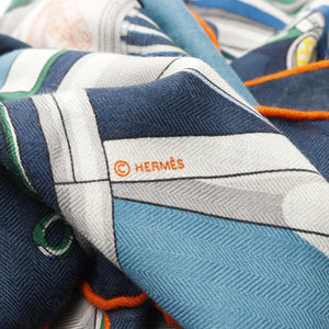 Carres 100 Neo Brandebourgs Scarf Cashmere Silk Navy Multicolor