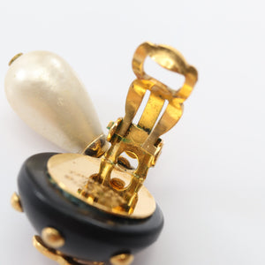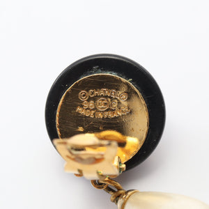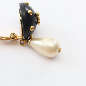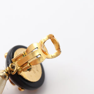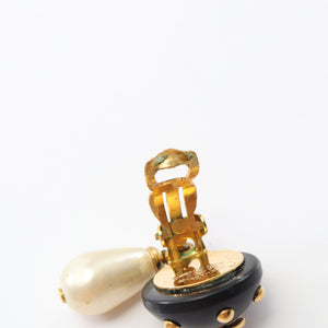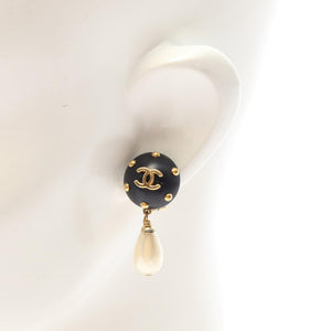 Coco mark Earrings Fake pearl GP Black White Gold 96C