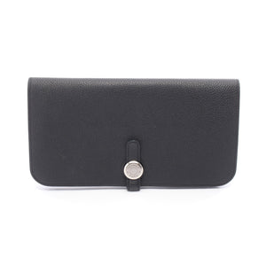 Dogon long Bi-fold Long Wallet Togo Black Silver hardware X stamp