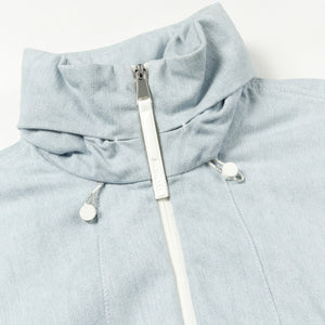SEVERAU Zip up Denim Jacket Cotton Light blue White Hooded