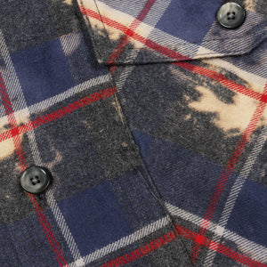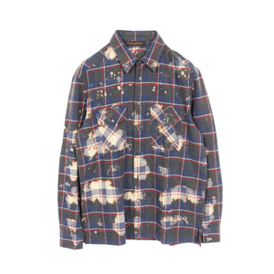 Flannel shirt Long sleeve Check Cotton Dark gray Multicolor Bleach processing