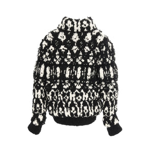Coco mark Knit Blouson All-over pattern Wool Cashmere Black White Batting