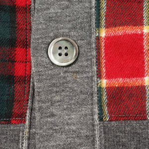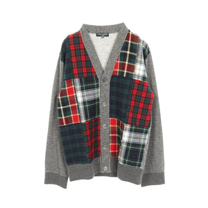 Cardigan Patchwork Check Cotton Gray Red Green