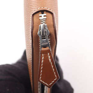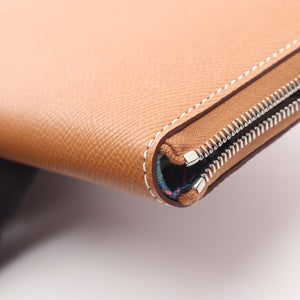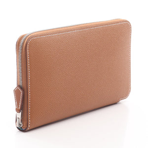 Azap Long Silk in Gold Round zipper long wallet Veau epsom Light brown Silver hardware W engraved