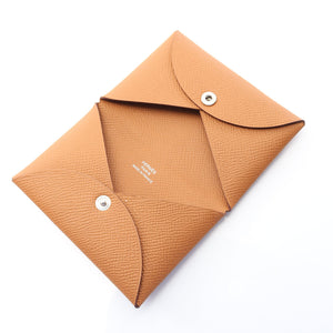 Calvi Gold Coin purse Veau epsom Light brown Silver hardware W engraved