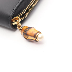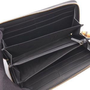 Nym Fair Bamboo Round zipper long wallet Leather Black