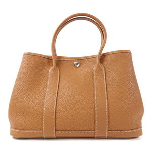 HERMES PHW Garden Party TPM Handbag Negonda Leather Brown Gold