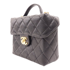 CHANEL CC GHW Vanity 2 Way Shoulder Bag Handbag AS3729 Calfskin Leather Black