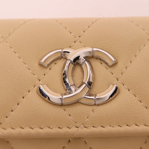 CHANEL CC SHW Card Case Lambskin Leather Beige