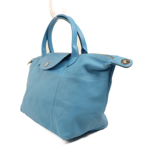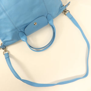 Longchamp SHW Shoulder Bag 2 Way Shoulder Handbag Lambskin Leather Light Blue