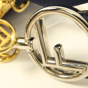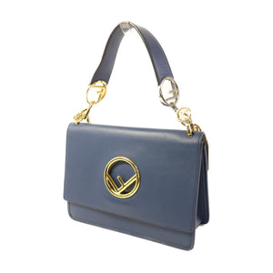 FENDI Kan I F 2 Way Shoulder Bag 8BT284 Calfskin Leather Navy Blue