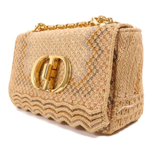 Christian Dior CD GHW Caro Bege Lona Shoulder Bag Canvas Beige