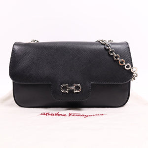 Salvatore Ferragamo SHW Chain Shoulder Bag Calfskin Leather Black