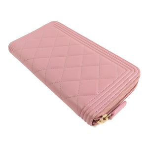 CHANEL CC GHW Boy Long Wallet Lambskin Leather