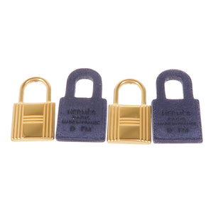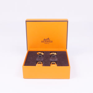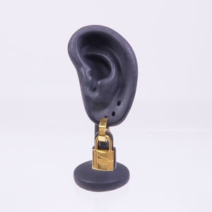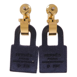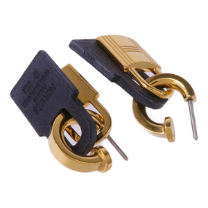 HERMES O'Kelly Earrings Metal Leather Gold Black